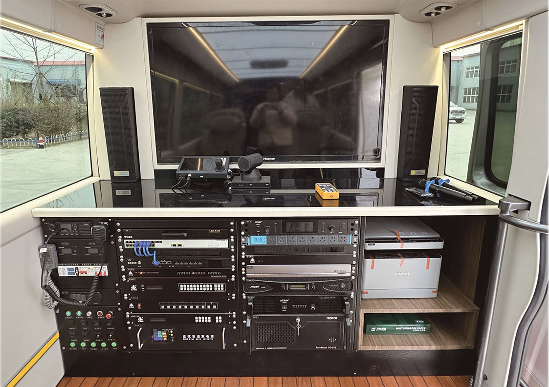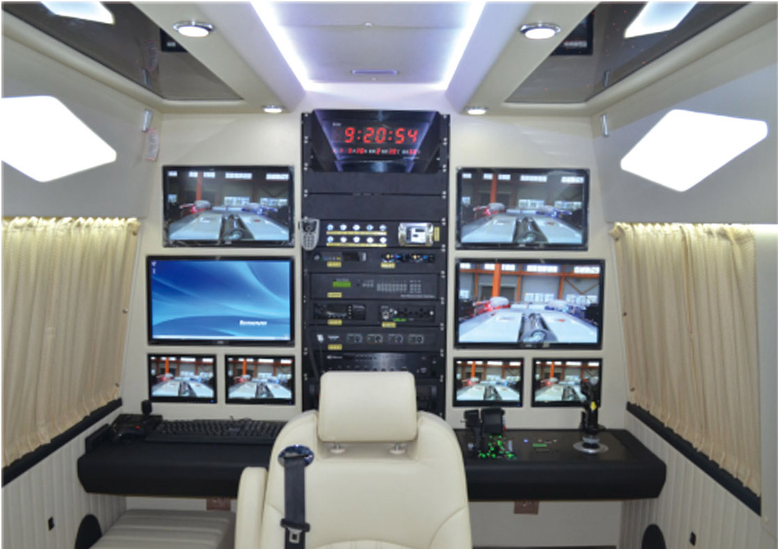 九瑞多功能應急指揮車具備通信傳輸、信息采集、信息網絡、指揮應用、綜合保障等系統功能。可實現應急指揮現場和后端指揮中心音視頻互聯互通,鏈接旗下便攜指揮箱、機器人、無人機單兵通信設備,形成人、車、機、場景智聯互動,以滿足全場景指揮需要。構建以車輛為中心的智能互聯通信集群,并可作為綜合協調多功能指揮中心。