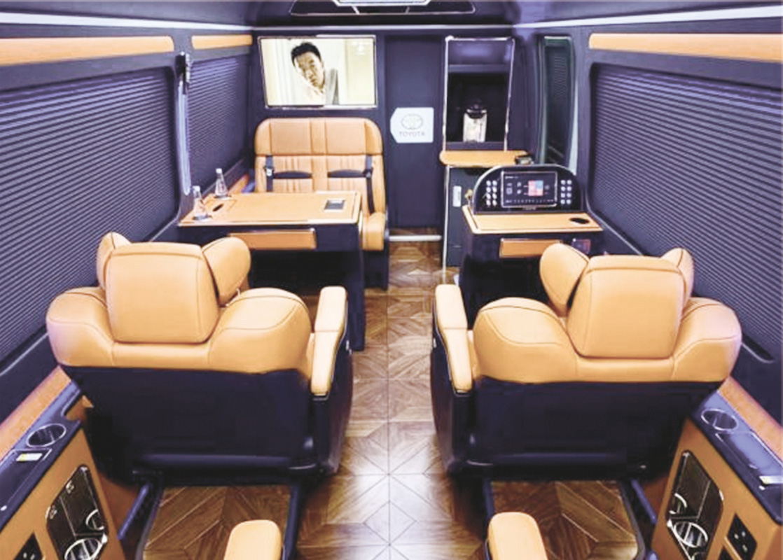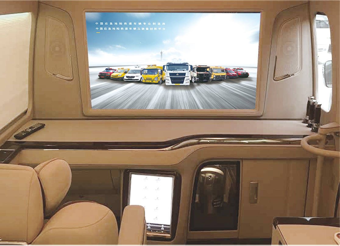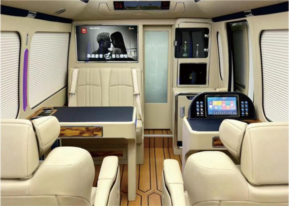 商務(wù)系統(tǒng):車內(nèi)可定制多功能豪華座椅、豪華辦公桌以及秘書(shū)桌、冰箱柜、酒柜、床、衛(wèi)生間等。