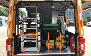 5)配置的折疊照明系統(tǒng),可360度旋轉(zhuǎn)為現(xiàn)場(chǎng)搶險(xiǎn)救援提供照明;