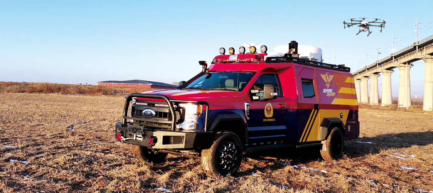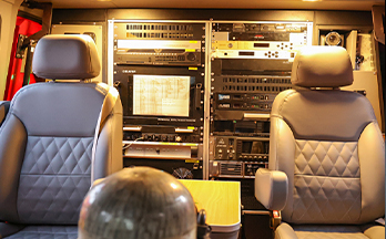 本車功能系統,可通過各種通信手段,在災害現場建立臨時指揮調度網絡,滿足便攜式會議終端站的網絡需求,實現在任意時間、地點與部局指揮中心、總隊指揮中心音視頻的互聯互通;利用微波圖傳等,將采集到的圖像傳輸至指揮車,通過衛星通信系統上傳至總隊指揮中心、部局指揮中心;能通過衛星電話與各級指揮部進行語音通信;為現場指揮部提供音視頻、電源、照明等通信保障。