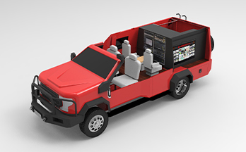 九瑞牌福特F550通信指揮車車內平臺按功能分為三段,前部駕駛艙、中部操作艙、后部設備艙;操作艙設有兩個可旋轉座椅,方便進行通信設備操作;后部設備艙可配備電纜盤、發電機控制單元、UPS主機、蓄電池、雜物柜,設備配重布局合理,安裝平衡穩固。