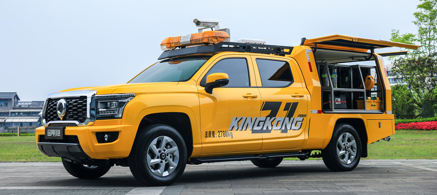 長城金剛炮皮卡通信指揮車則是為應對自然災害而打造的車型,可實現多維偵測、無憂通訊、智能保障,用于消防、災害等應急情況現場指揮作業和水利、電網、通信等行業設備搶修。該車貨箱增設數種專業通訊設備,比如一些受到自然災害影響的場所,原有的通信設備可能無法正常工作,會導致現場的手機網絡出現無信號、弱覆蓋、網絡擁塞等狀況。這時就需要應急通信車登場,為救災現場人員提供語音及上網功能的保障,在一些邊遠地區,還可以借助衛星通信設備實現上述保障能力。而皮卡本身就擁有較強的通過性,對于需要這種設備的地區也能更加自如地應對。