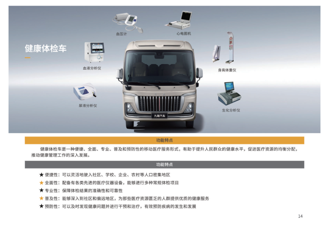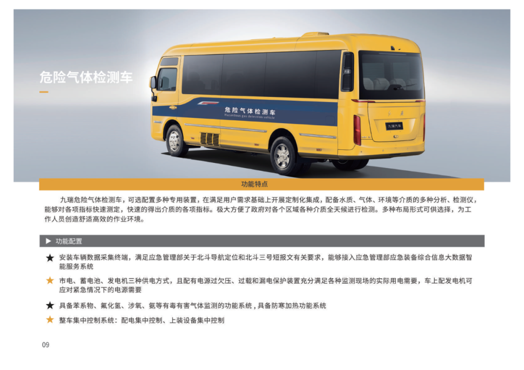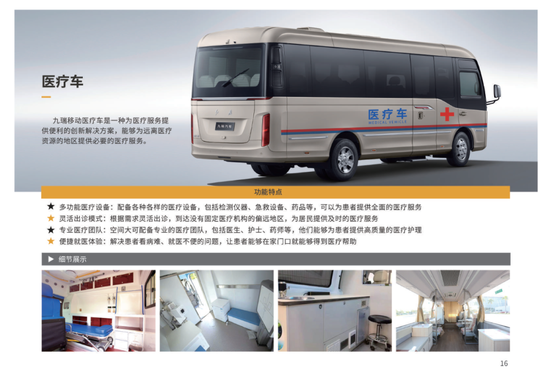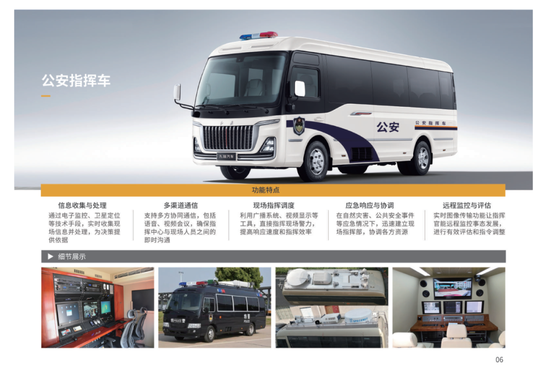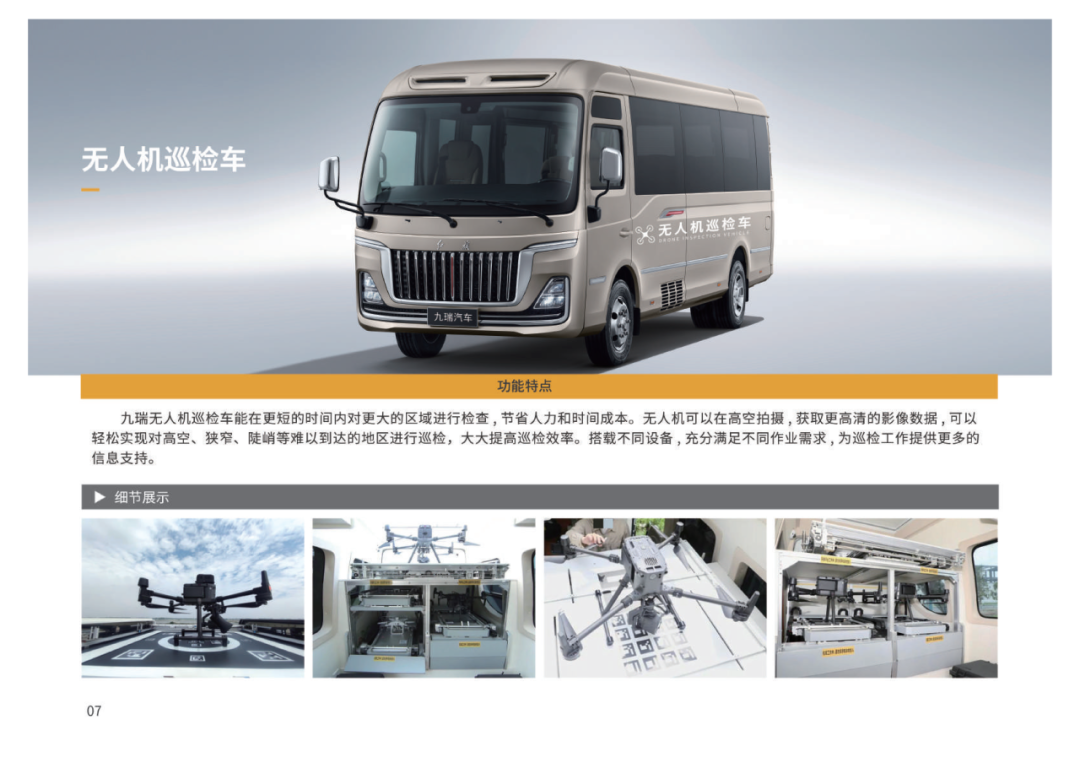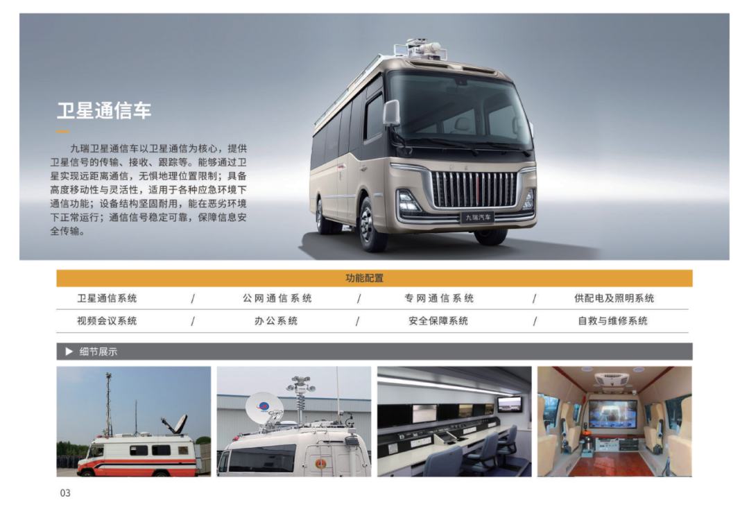 一汽紅旗與九瑞汽車強強聯合、雙向賦能,共同打造汽車生產廠商與應急裝備制造企業優勢互補、聯合創新的合作典范。 ·多功能指揮車 ·消防指揮車 ·移動衛星基站車 ·衛星通信車 ·移動應急管理平臺 ·公安指揮車 ·無人機巡檢車 ·氣象監測車 ·無人機反制車 ·危險氣體檢測車 ·礦山綜合救援車 ·商務車 ·健康體檢車 ·宿營車 ·機場調度車 ·醫療車