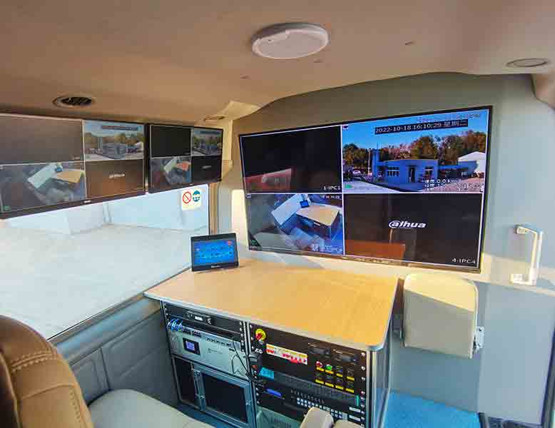 電力供應(yīng)系統(tǒng):可能配備發(fā)電機(jī)、電池組、不間斷UPS、市電接口等供電設(shè)備,為全車設(shè)備提供不間斷的電力供應(yīng)。
