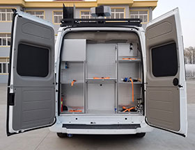 輕客無人機(jī)地形測(cè)繪車,通常基于輕型客車底盤進(jìn)行改裝,如依維柯輕客、江鈴全順等。這類車輛具有良好的道路適應(yīng)性和一定的越野能力,能夠在不同地形條件下行駛,為無人機(jī)的測(cè)繪作業(yè)提供靈活的移動(dòng)平臺(tái)。同時(shí),車輛內(nèi)部空間經(jīng)過合理設(shè)計(jì),可容納無人機(jī)及相關(guān)設(shè)備,并為操作人員提供舒適的工作環(huán)境。