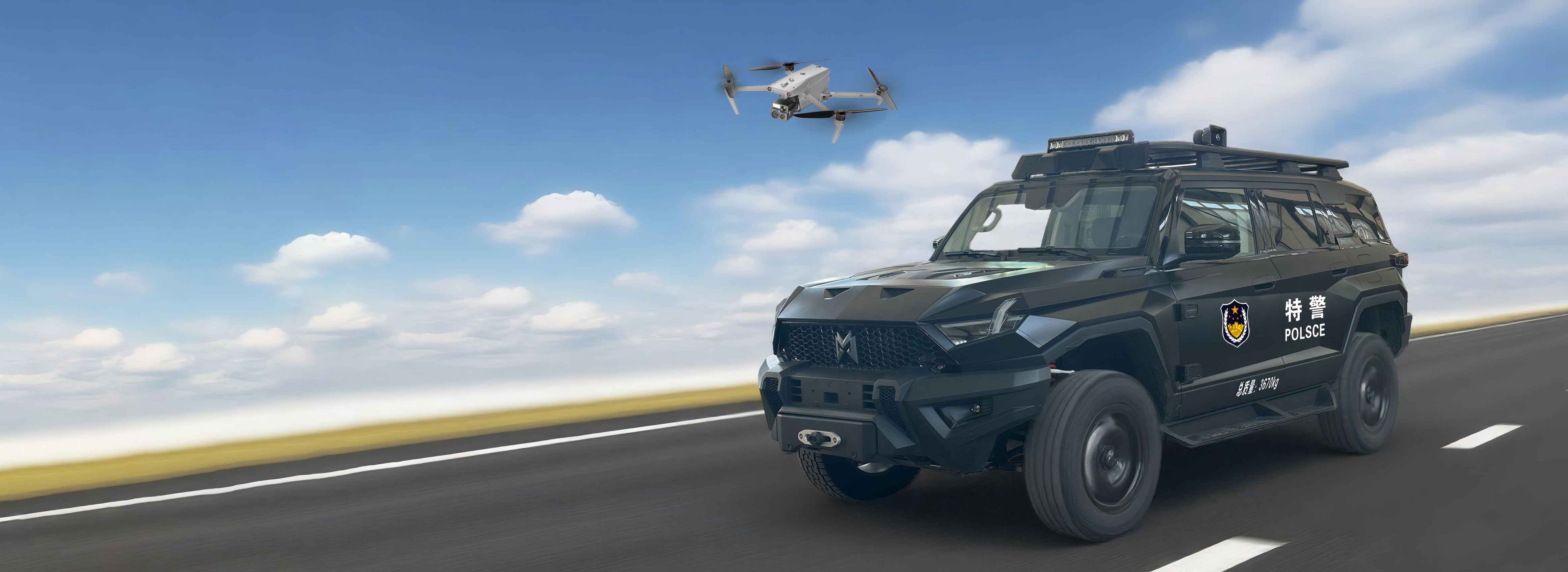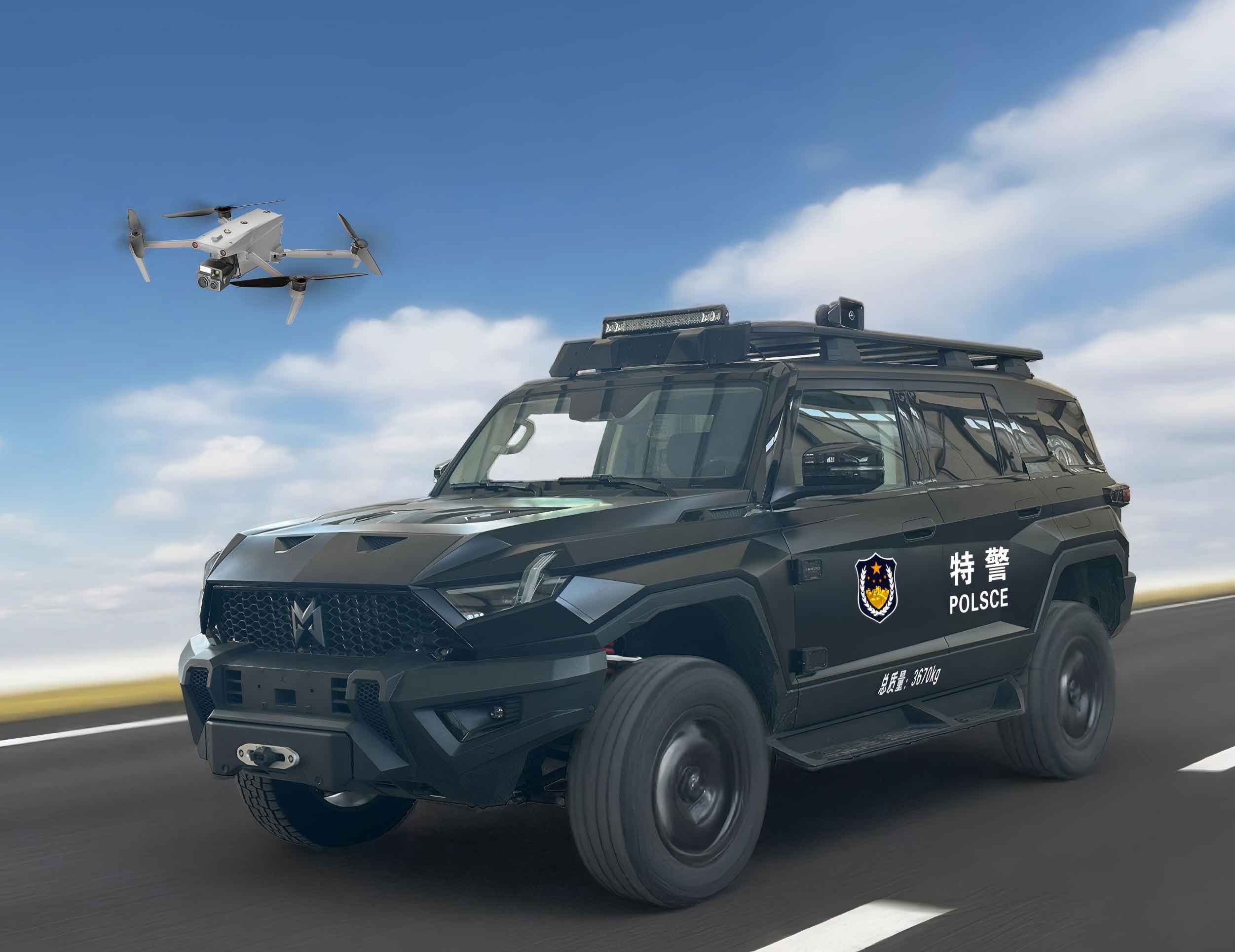 作為專門打造的智能警務裝備標桿,其核心價值在于實現 “地域適配性 + 技術實用性” 的雙重突破:一方面保留猛士 917 原廠非承載式車身與雙模動力優勢,另一方面針對氣候與地理特征優化防護工藝、定制無人機協同方案,形成從任務部署、現場處置到數據回溯的全流程閉環。相較傳統人工巡檢,該車將巡查效率提升 3 倍,山地林區隱患識別覆蓋率達 98%。