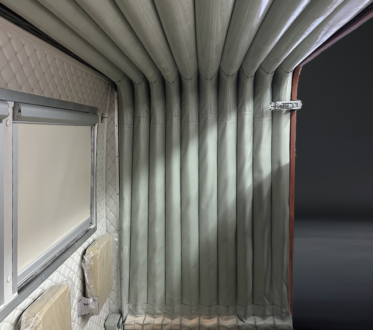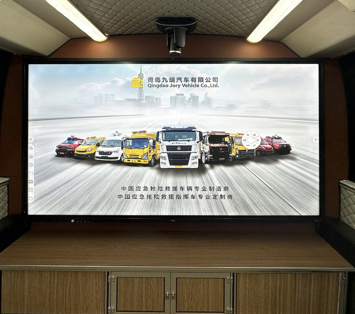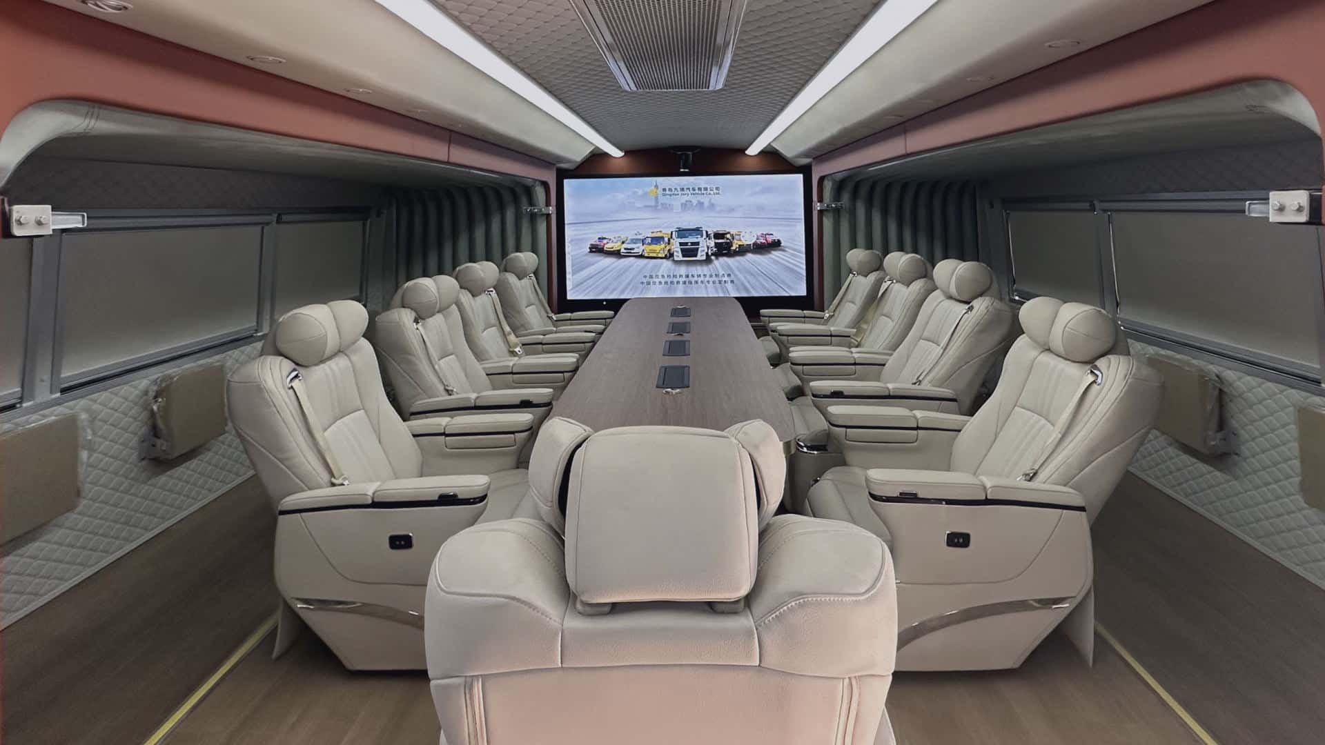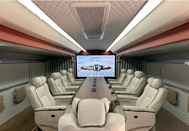 采用雙側(cè)拉廂式艙體,內(nèi)設(shè)多功能會(huì)議桌、9把高端定制會(huì)議椅、10把折疊座椅,空間寬敞,可滿(mǎn)足19人同時(shí)會(huì)議功能。