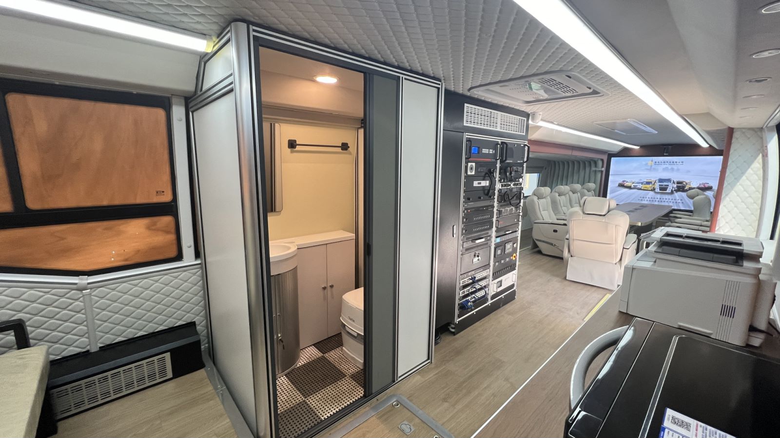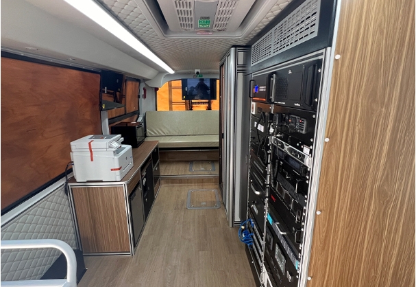 另外還配備了供配電系統(tǒng)、升降照明系統(tǒng)、激光打印一體機(jī)、車(chē)載飲水機(jī)、微波爐等生活設(shè)備,可以滿(mǎn)足長(zhǎng)時(shí)間野外作業(yè)。