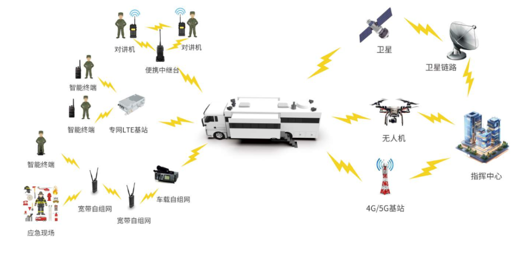整車集成了通信系統、辦公系統、音視頻采集及傳輸、數據處理及存儲、實時監控、廣播照明、供配電、生活保障等系統功能,隨時隨地實前方現事故現場、調度平臺與后方指揮中心的實時多方指揮作戰。可用于氣象、應急、消防等多行業的應急指揮調度。