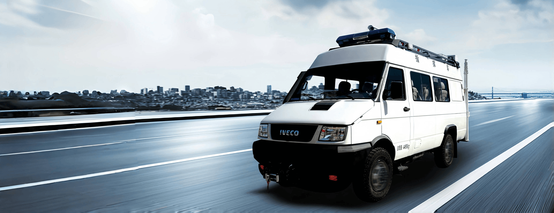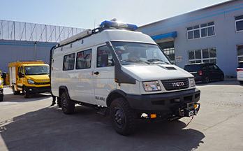 該車是在依維柯2056軍用越野底盤的基礎上進行改裝的通信指揮車,動力強勁、越野能力優(yōu)秀,高涉水能力,具備在災害、事故、應急現場指揮調度的先鋒作戰(zhàn)能力。具備多重通信、指揮、調度功能,將現場信息實時傳回提供決策依據,實現現場的聯動指揮調度。